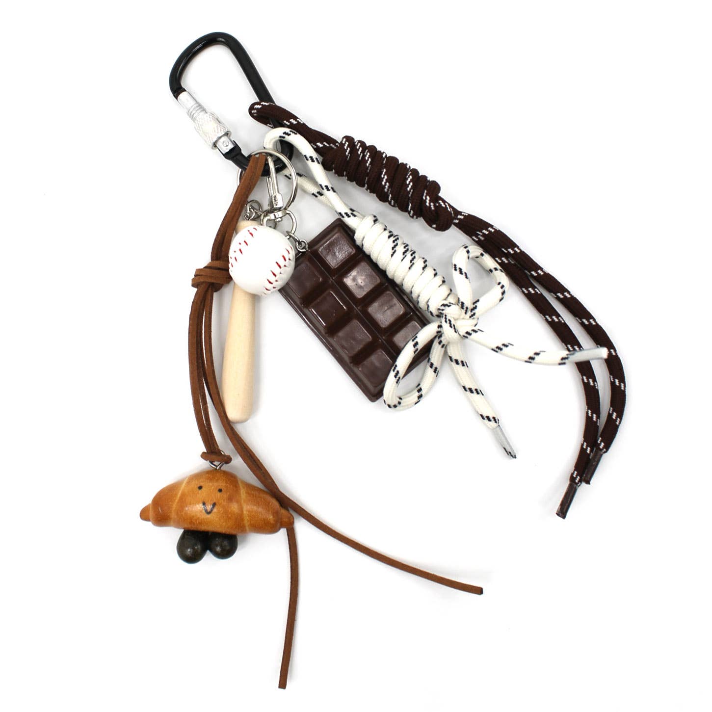 This chocolate version highlights your favorite treats: bagel, pretzel, or croissant, accompanied by a chocolate bar, a mini baseball set, and contrasting cords.