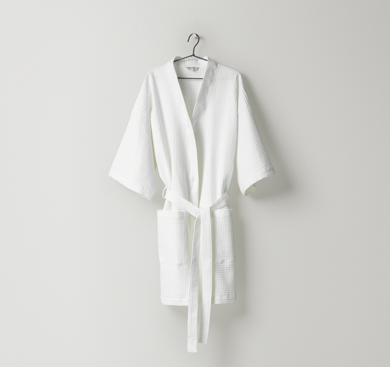 The Pique bathrobe is made from classic waffle cloth. The lightweight and comfortable Pique consists of pure cotton and convinces thanks to its softness and absorbency.