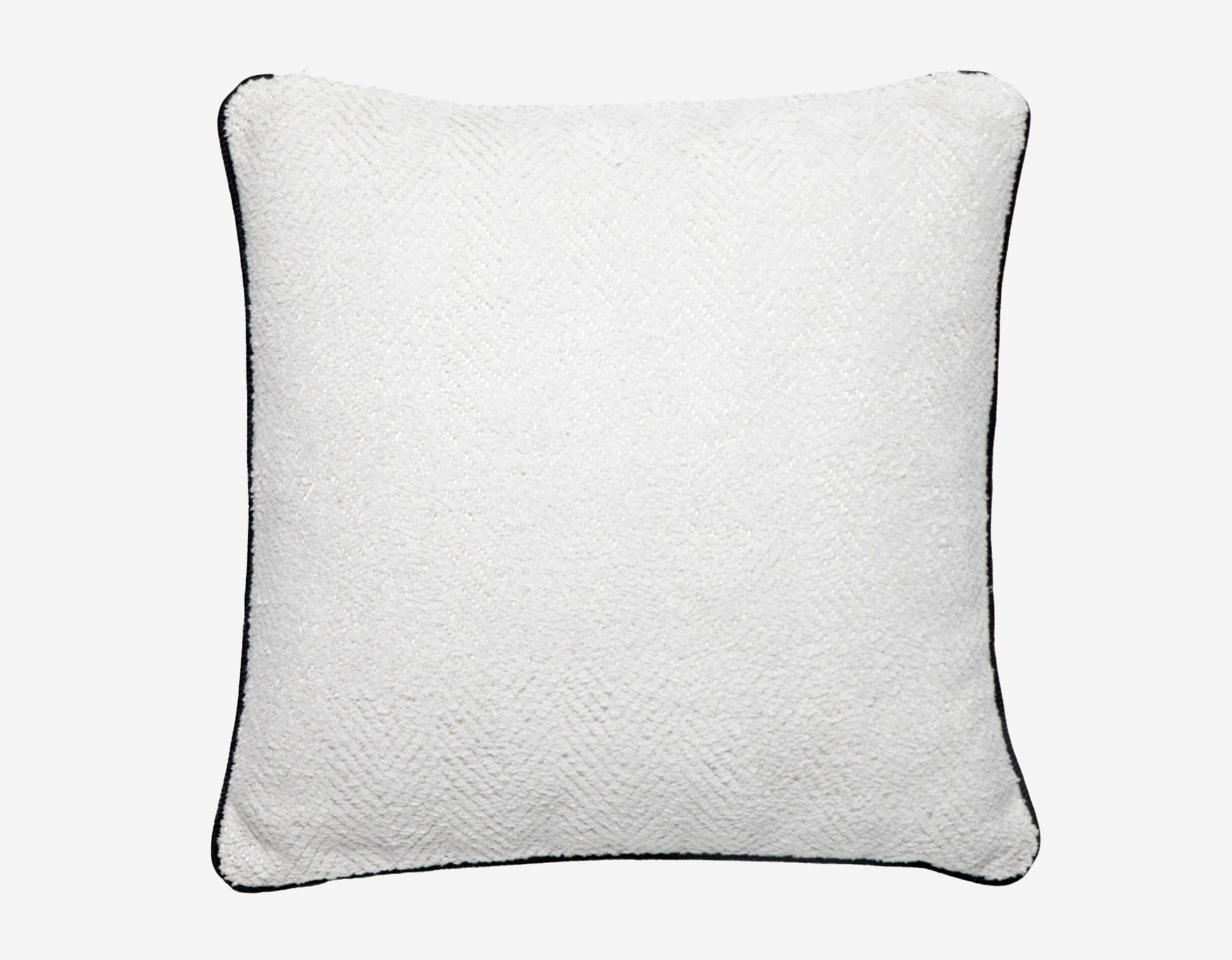 Colonnata cushion cover with stuffing. Herringbone texture with cotton long pile chenille. Enriched with velvet trimmings.