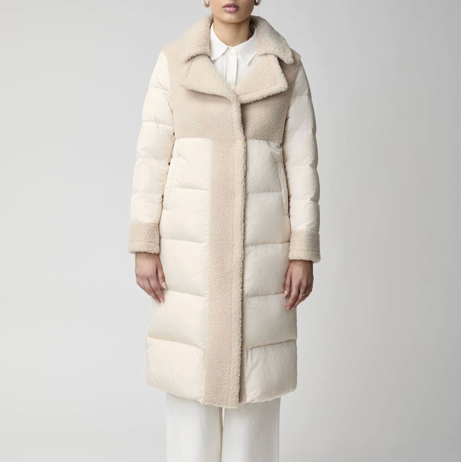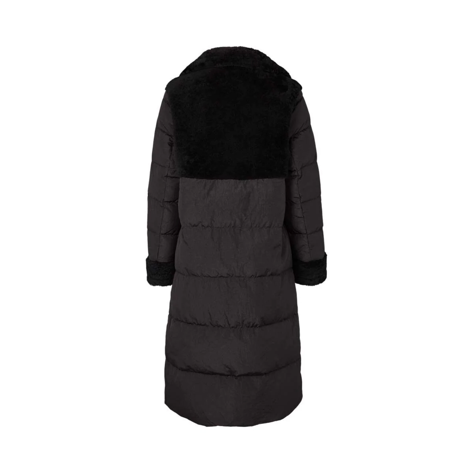 Jade is a long goose down coat with details of the softest sheepskin wool. The coat a very light and closes with press studs. It has sheepskin wool on the sleeves, chest, back and in the collar.