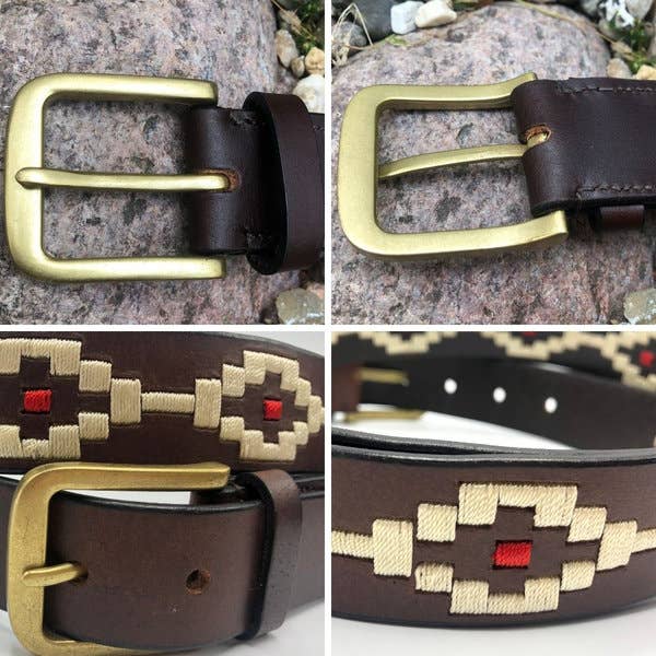 The dyed leather is combined with woven patterns in various colors, creating a special highlight. A practical buckle allows for easy adjustment of the belt size, ensuring an optimal fit and maximum comfort.