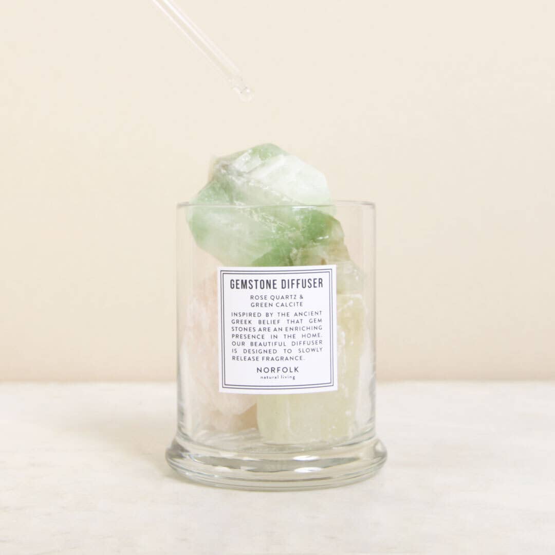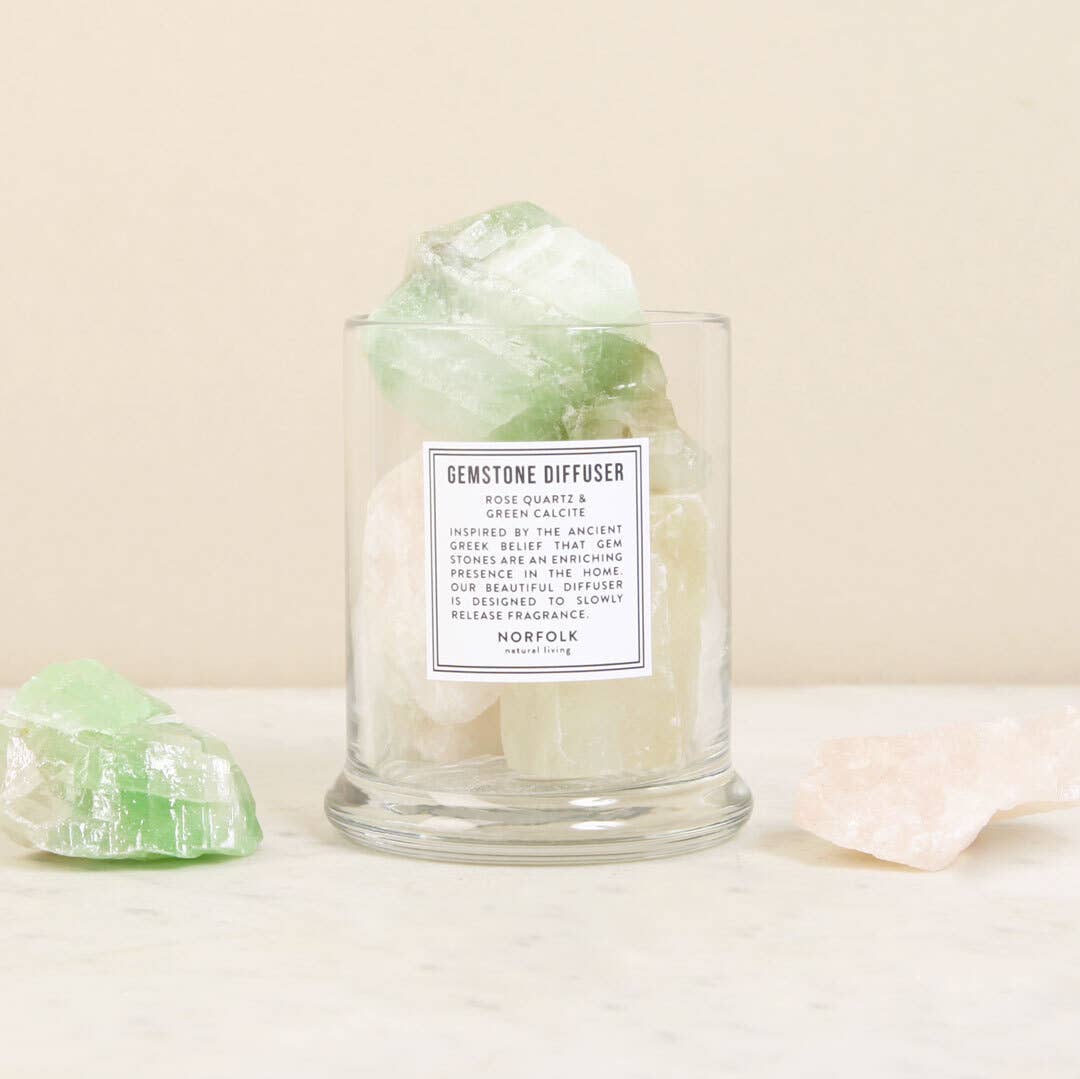 This unique gemstone diffuser blends rose quartz with green calcite, designed to couple the therapeutic energy of gemstones with the beautiful fragrance of diffuser oils. Simply add a couple of drops of diffuser oil, allow the stones to absorb the fragrance before gently releasing it into the air. Rose Quartz is a multi-vitamin for the soul. This stone acts as an energy amplifier and helps you recharge after a busy day. When incorporated into your environment, it promotes positive vibes in your chosen space. Combined with the healing properties of Calcite, this aids mental and physical cleansing. Add one of our beautiful diffuser oils to receive the full therapeutic benefits of our gemstone diffuser.
