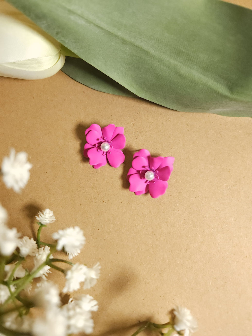 Questi splendidi orecchini a forma di fiore aggiungono un tocco giocoso ma elegante a qualsiasi outfit. Realizzati con colori vivaci e un delicato centro simile a una perla, sono un accessorio affascinante per ogni occasione.